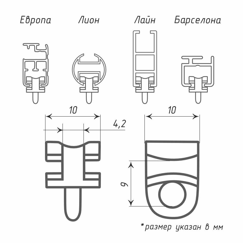 Бегунок 6 мм подходит для карнизов на базе профилей «Лион», «Европа», «Барселона».