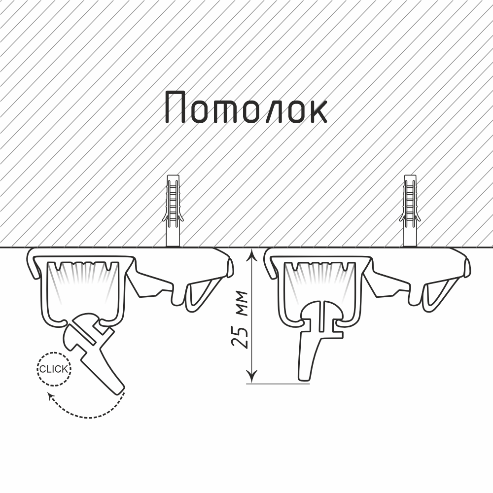 Для корректной работы системы защелкивания необходим профиль с шириной паза 6,4 - 7,0 мм.