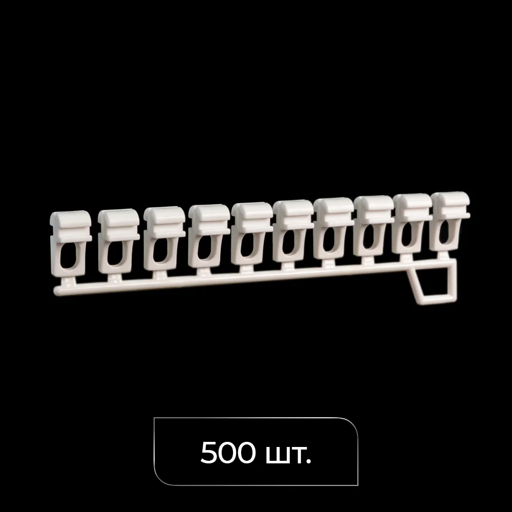 Оптимизация для производителей (B2B): бегунки поставляются в лентах по 10 штук, что ускоряет процесс сборки карнизов. Достаточно вставить ленту в профиль и легким движением отделить нужное количество бегунков — никакой возни с каждым элементом по отдельности!