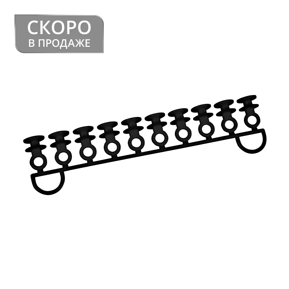 Для удобства бегунки соединены на ленте по 10 штук. Это ускоряет сборку карниза и упрощает инвентаризацию на складе. Блок с глайдерами легко вставляется в паз профиля через торец. Затем соединительные перемычки обламываются, а планка утилизируется.