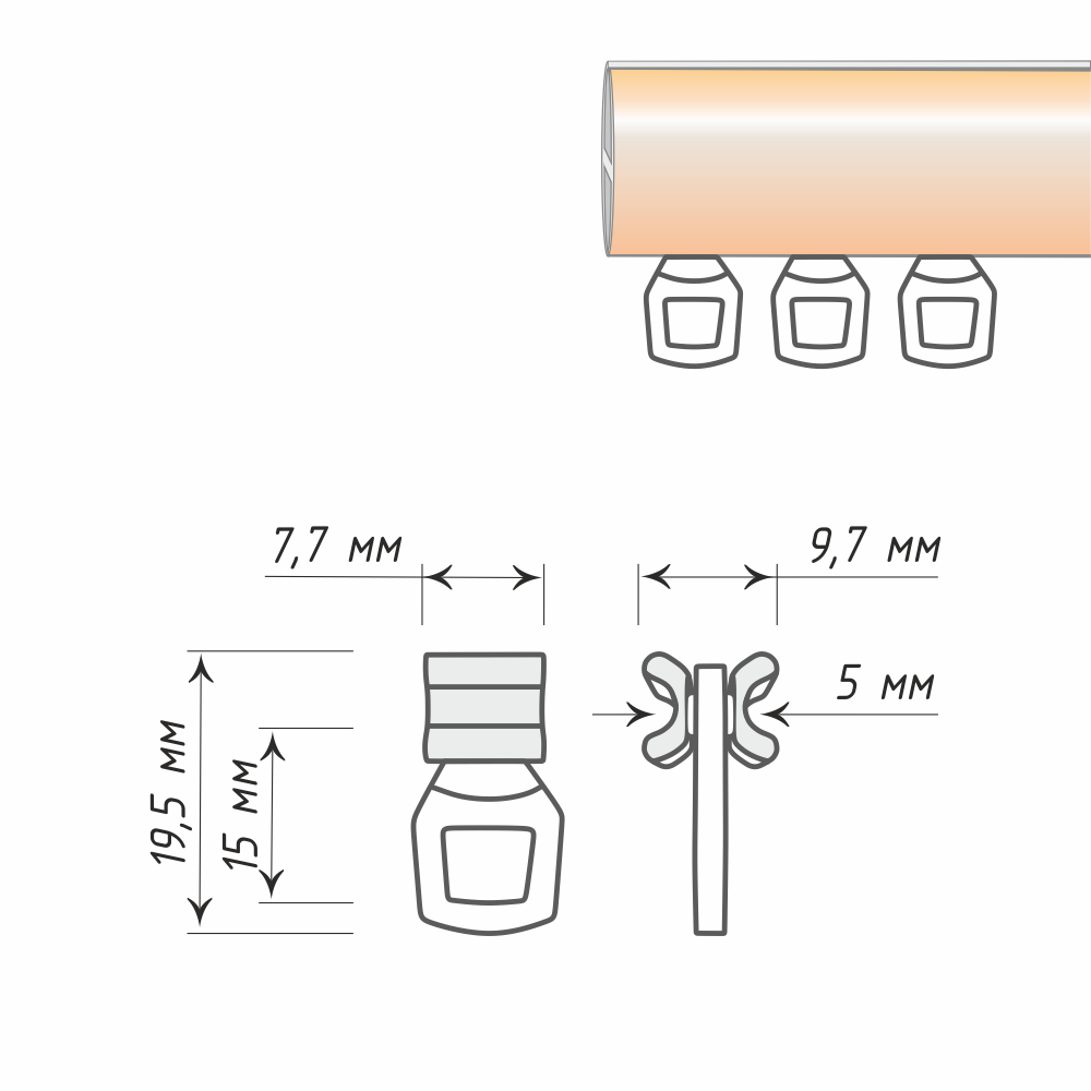 Бегунок предназначен для крепления штор на профильных карнизах с рабочей дорожкой шириной 6 мм.