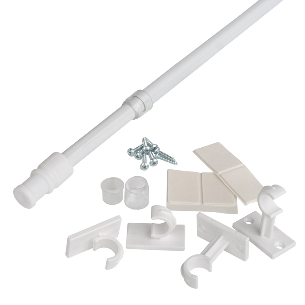 Мини-карниз открытого типа – простой и удобный в эксплуатации. Его легко можно снимать с открытых кронштейнов для поддержания чистоты занавесок. В комплектации имеется 2 пары кронштейнов различной длины. Удлиненные кронштейны необходимы в том случае, если нужно увеличить отступ карниза от окна. Укороченные используются для размещения занавесок ближе к окну. Кронштейны крепятся на створках окон в нужных точках с помощью двустороннего скотча или саморезов (все необходимые компоненты входят в комплект). Регулируемая телескопическая штанга имеет декоративные цилиндрические наконечники, которые защелкиваются на зафиксированные кронштейны. |