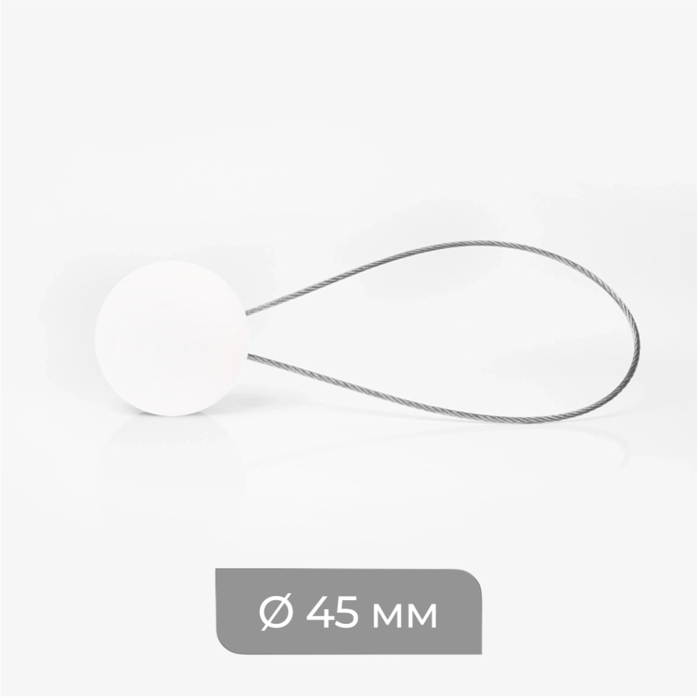 | Наименование для печати | Клипса магнитная ø4,5 см «Soft touch» с тросом 30 см Белый мат. |