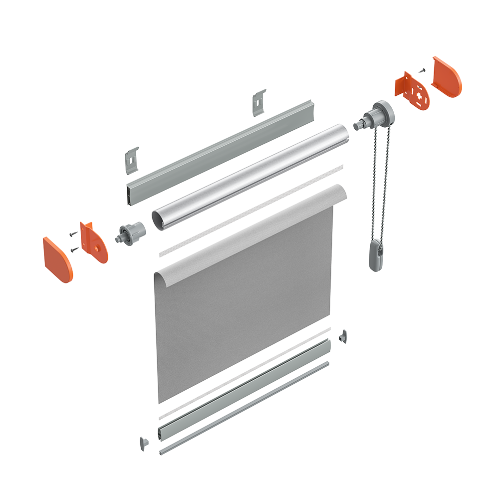 Кронштейны предназначены для механизмов с диаметром 32 мм и комплектуются боковыми крышками, что придаёт шторам эстетичный и аккуратный вид. Вынос от монтажного профиля составляет 40 мм.