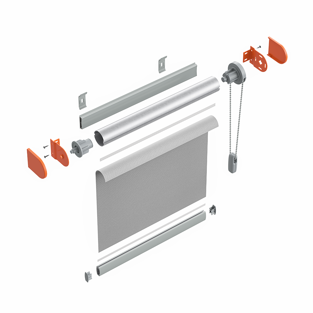 Кронштейны подходят для механизмов с диаметром 38 мм и комплектуются боковыми крышками, что придаёт шторам эстетичный и аккуратный вид. Вынос от монтажного профиля составляет 42 мм.