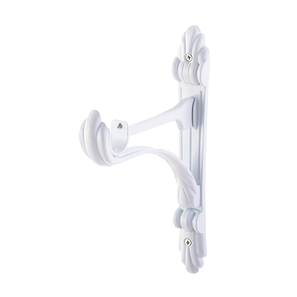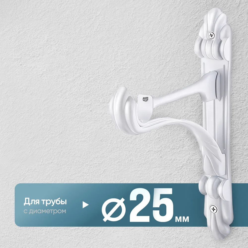 Крупный однорядный кронштейн, способный быть самостоятельным декоративным элементом оконной композиции. Плавные линии создают изделие изысканной формы, не только выполняющее практические функции держателя карнизной трубы, но и создающие приятное позитивной впечатление.