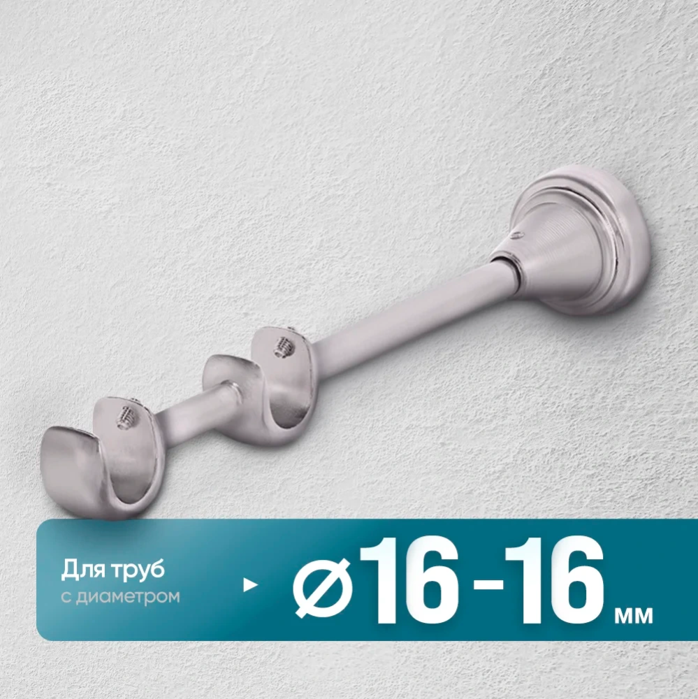 Двухрядный металлический кронштейн минималистичного дизайна. Это один из популярных кронштейнов для двух труб одного диаметра. Имеются варианты для труб 16/16 и 19/19.