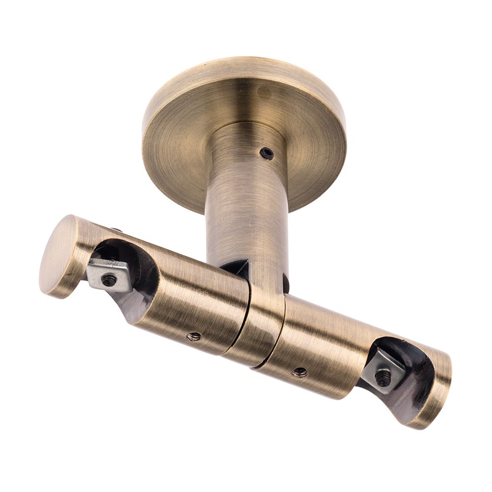 Эта потолочная модель кронштейна позволяет создать двухрядную шторную композицию на базе профиля «Лион» диаметром 19 мм.