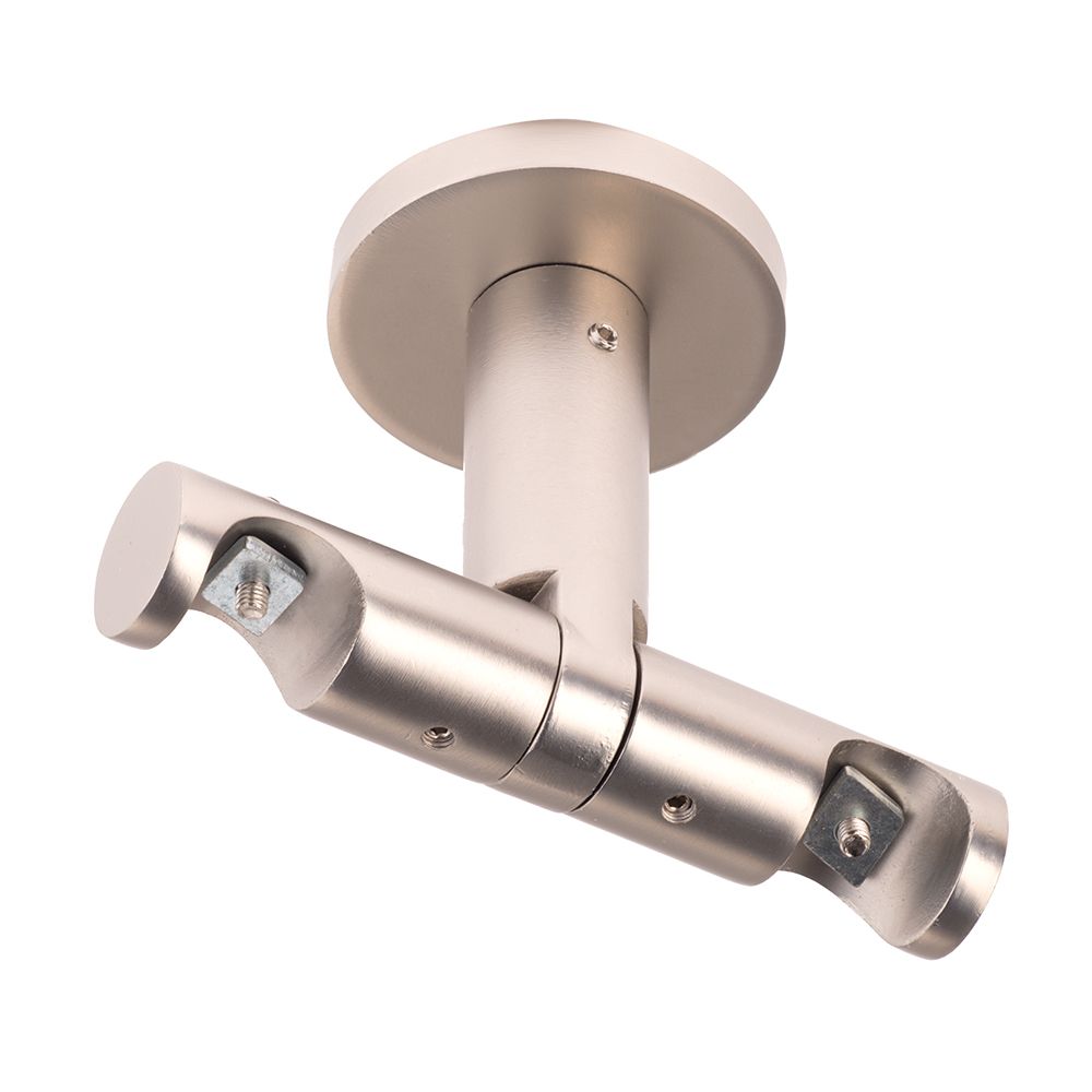 Эта потолочная модель кронштейна позволяет создать двухрядную шторную композицию на базе профиля «Лион» диаметром 19 мм.