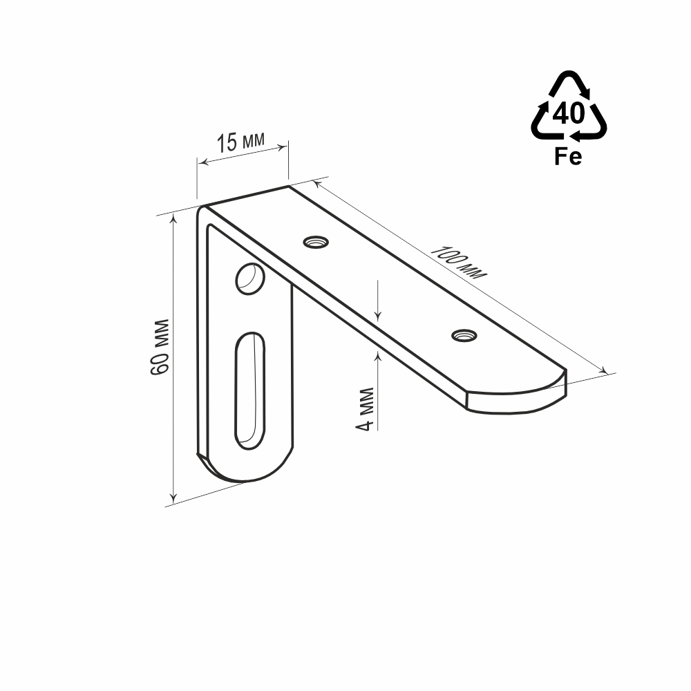 Прочность и надежность: Кронштейн толщиной 4 мм обеспечивает долговечность эксплуатации и устойчивость к нагрузкам.