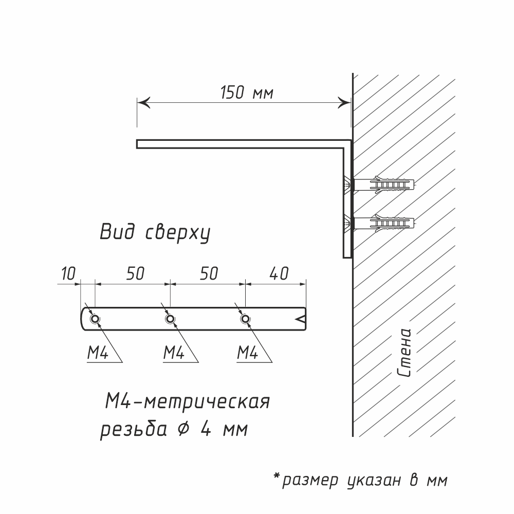 Прочность и надежность: Кронштейн толщиной 4 мм обеспечивает долговечность эксплуатации и устойчивость к нагрузкам.