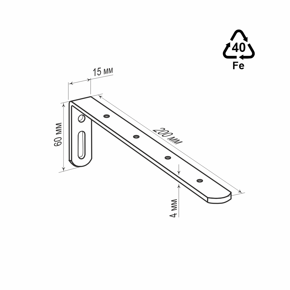 Прочность и надежность: Кронштейн толщиной 4 мм обеспечивает долговечность эксплуатации и устойчивость к нагрузкам.