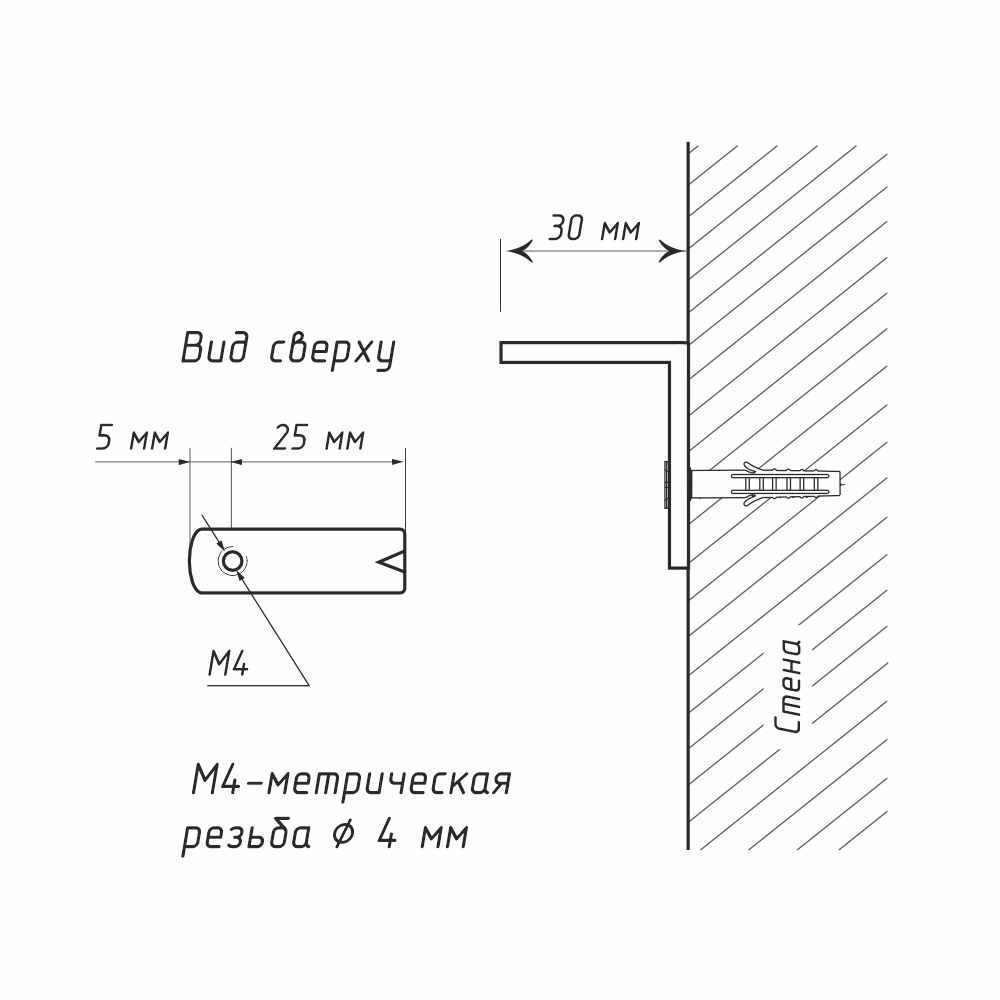 Кронштейн стеновой 35x30 мм предлагает возможность отступа от стены на расстояние 25 мм. Резьба М4 в крепежных отверстиях обеспечивает легкость монтажа карниза и надежность дальнейшей эксплуатации конструкции.