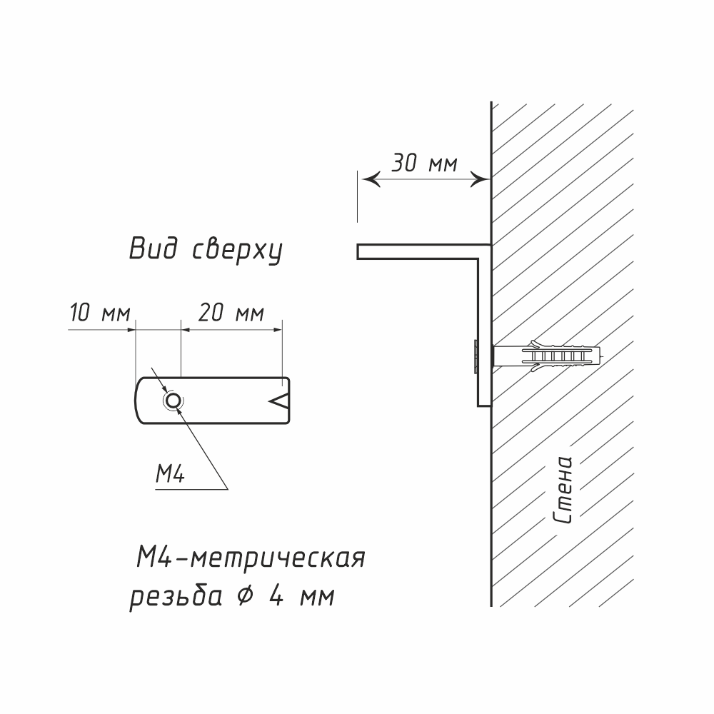 Кронштейн стеновой 35x30 мм с крепежом предлагает возможность отступа от стены на расстояние 25 мм. Резьба М4 в крепежных отверстиях обеспечивает легкость монтажа карниза и надежность дальнейшей эксплуатации конструкции.