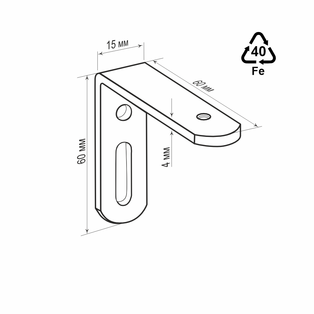 Прочность и надежность: Кронштейн толщиной 4 мм обеспечивает долговечность эксплуатации и устойчивость к нагрузкам.