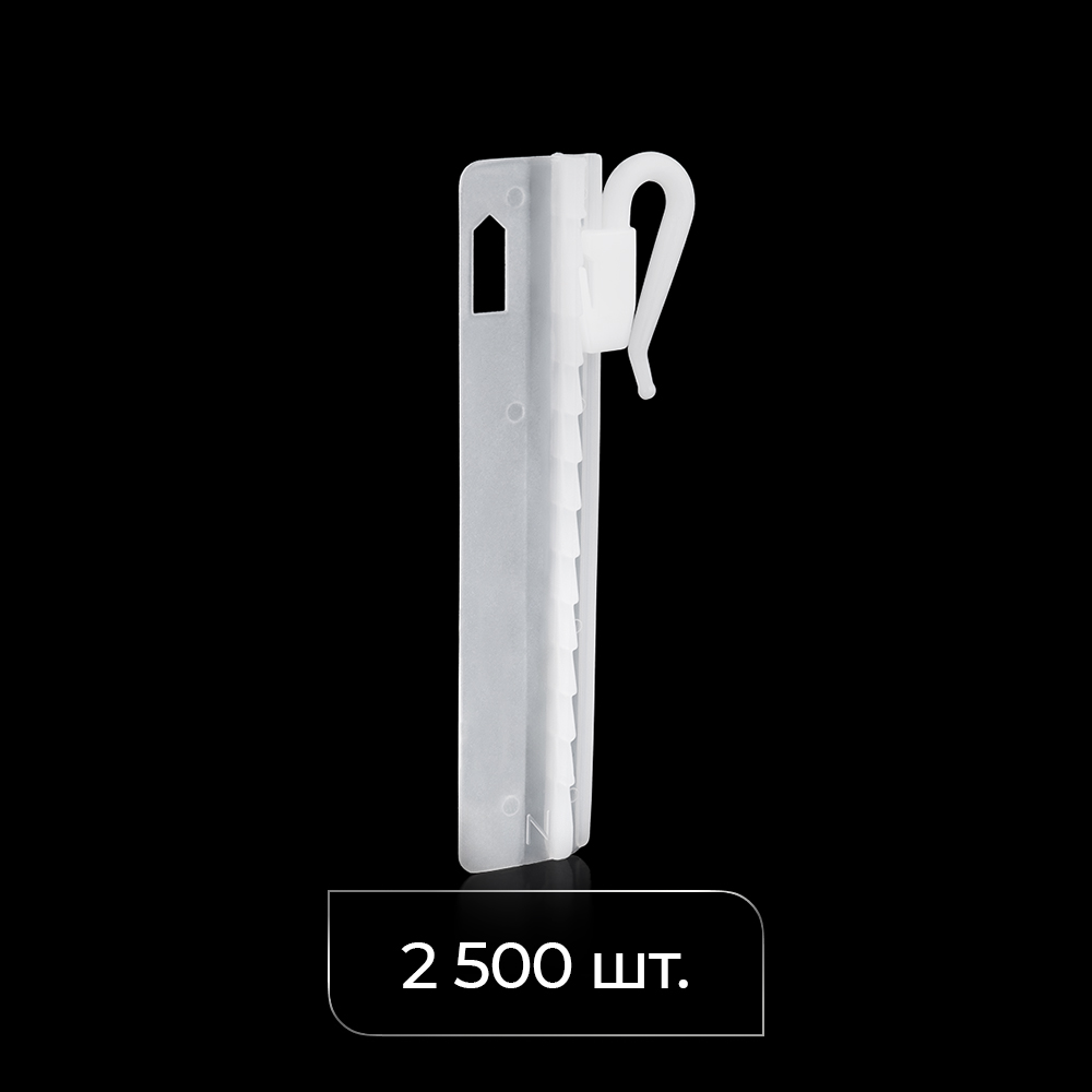 | Наименование для печати | Крючок для штор регулируемый пришивной 75 мм Белый короб 2500 шт Полиацеталь (POM) |