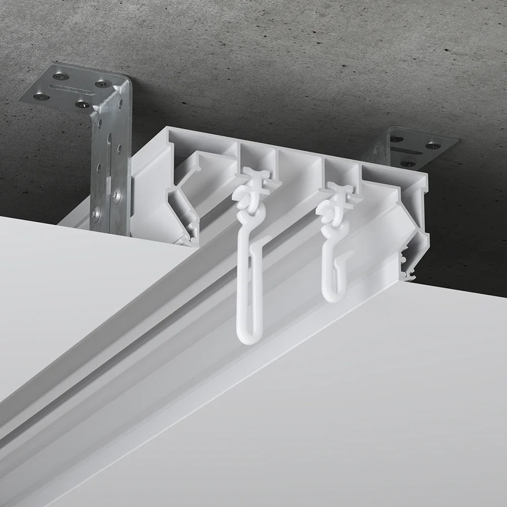 Удлиненная конструкция крючка позволяет опустить штору ниже уровня потолка, обеспечивая свободное передвижение бегунков по пазу профиля. Может использоваться для различных типов штор, включая тюли, занавески, шторы блэкаут, портьеры.