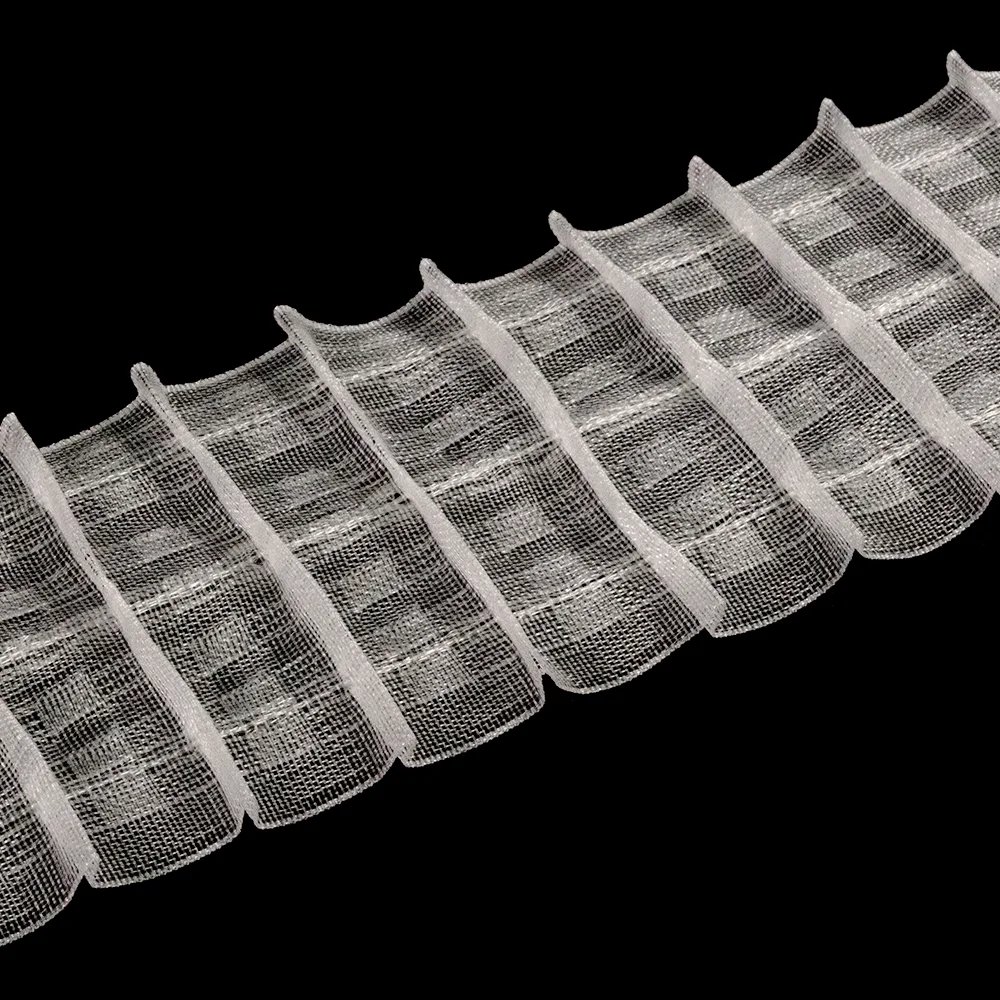 Изготовленная из качественной полиэстровой нити, лента обеспечивает стабильные и равномерные складки, которые легко стягиваются и практически не подвержены усадке (не более 1%).