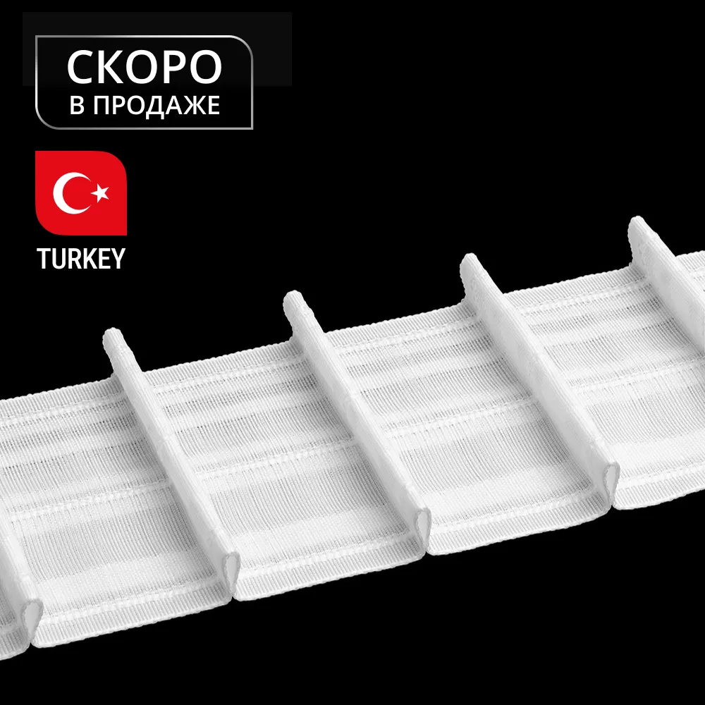 Лента идеально подходит для штор высотой до 3,6 м. Минимальный размер складки позволяет использовать штору в узких нишах.