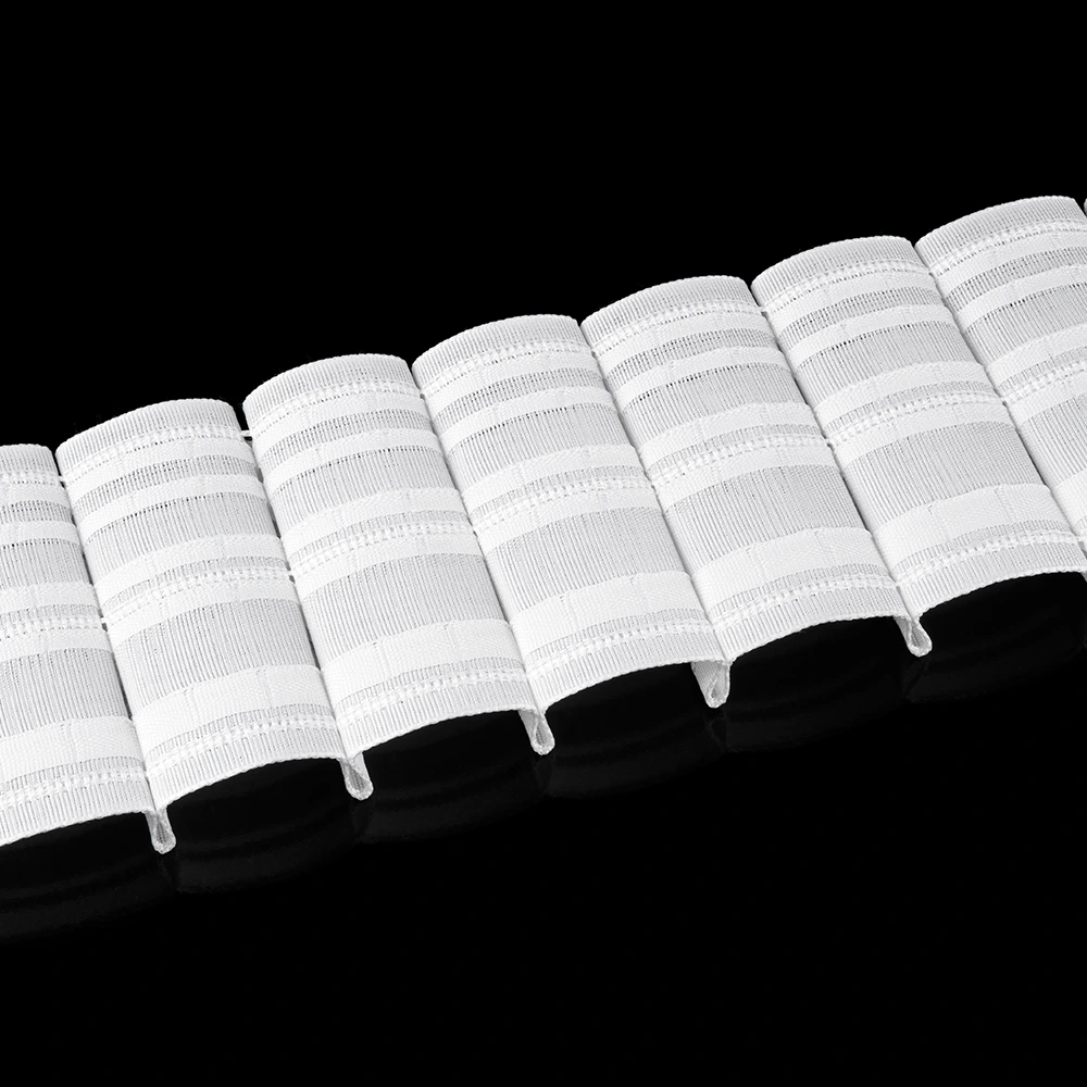 Эстетичность: Белая лента остаётся нейтральной, акцентируя внимание на дизайне штор и подчеркивая их изысканность.