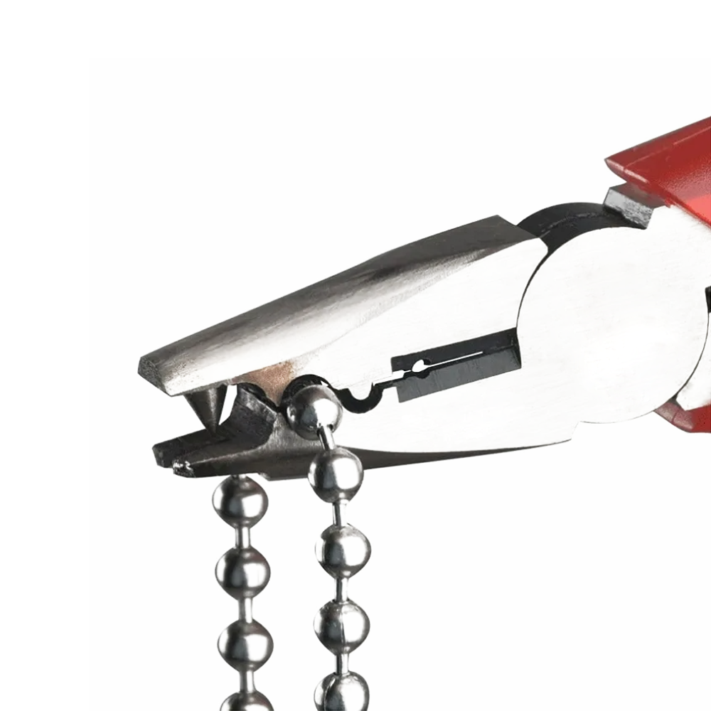 Важно. Замыкание контура цепи в кольцо происходит посредством соединительного элемента в форме металлического шарика диаметром 4,5 мм либо с использованием сдвоенного шарикового соединителя.Продуманная конструкция: плоскогубцы для соединения цепей из металла и пластика оснащены удобными рукоятками с антискользящим покрытием.