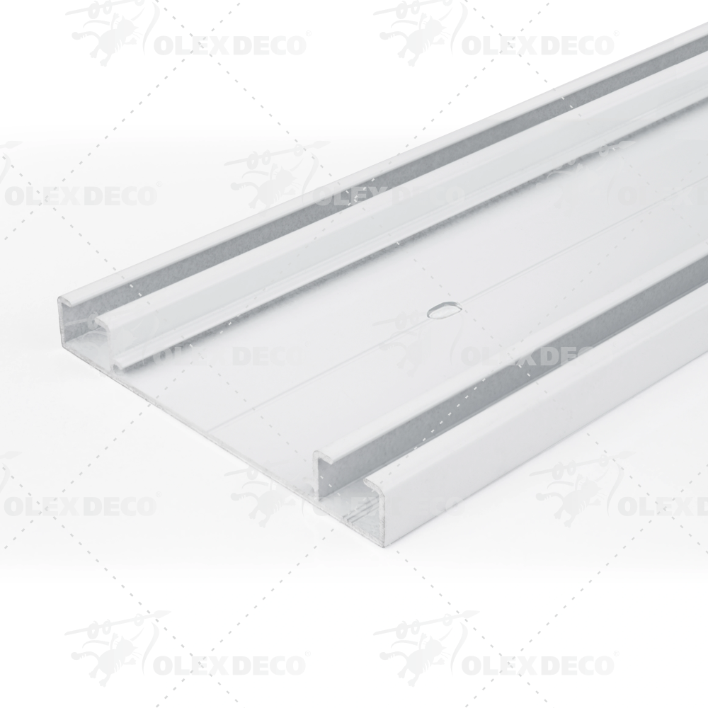 Алюминиевый двухрядный профиль потолочного карниза для штор «Верона» с перфорацией: надежность и стиль в одном решении. Предназначен для размещения двух шторных полотен любой фактуры. Первое полотно - плотная ткань. Второе – тюль.