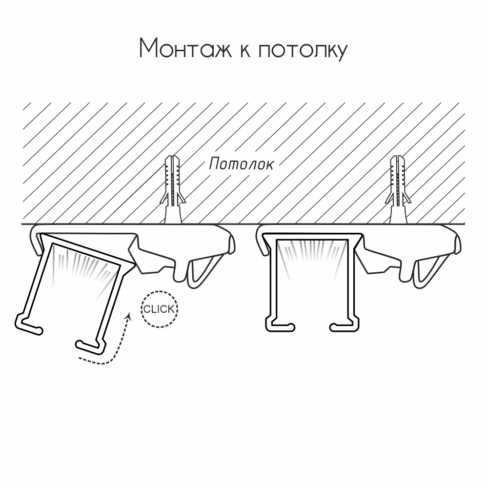 Ассортимент включает в себя два цвета, белый глянец и черный матовый.С помощью комбинированного суппорта карниз «Отель Гранд» может быть прикреплён к потолку. Используйте саморезы и дюбеля.