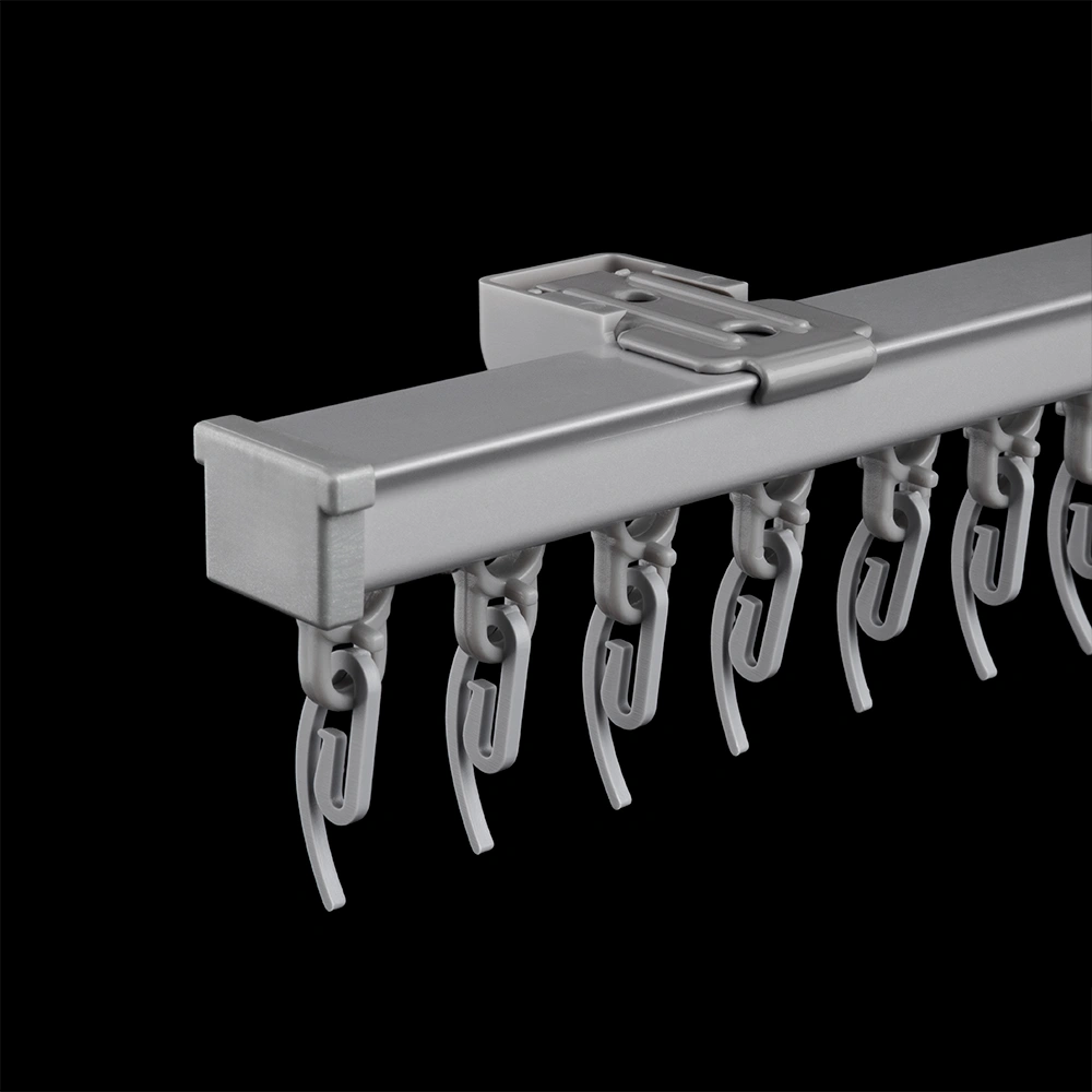 Дополнительное преимущество карниза – возможность вставлять в профиль специальные бегунки с крючками, не снимая сам карниз. Это делает размещение занавесок более удобным и простым.