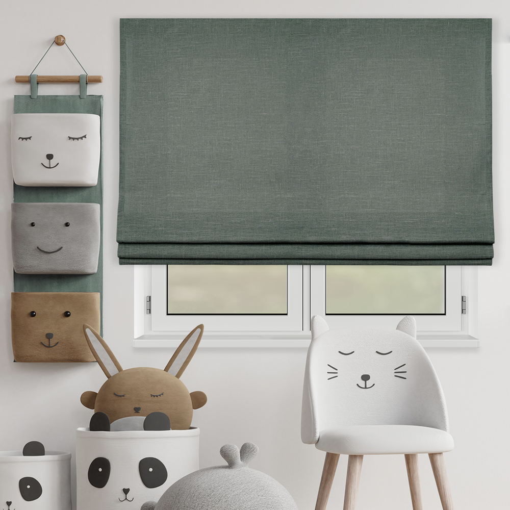 Ткань римской шторы – комбинированная, напоминающая натуральный лен, но за счет имеющихся синтетических волокон в составе материала, ткань не выгорает на солнце, в отличие от натурального льна, не вытягивается и не дает усадку при стирке, не деформируется и не скатывается, что позволяет ей долго сохранять свой первоначальный вид.