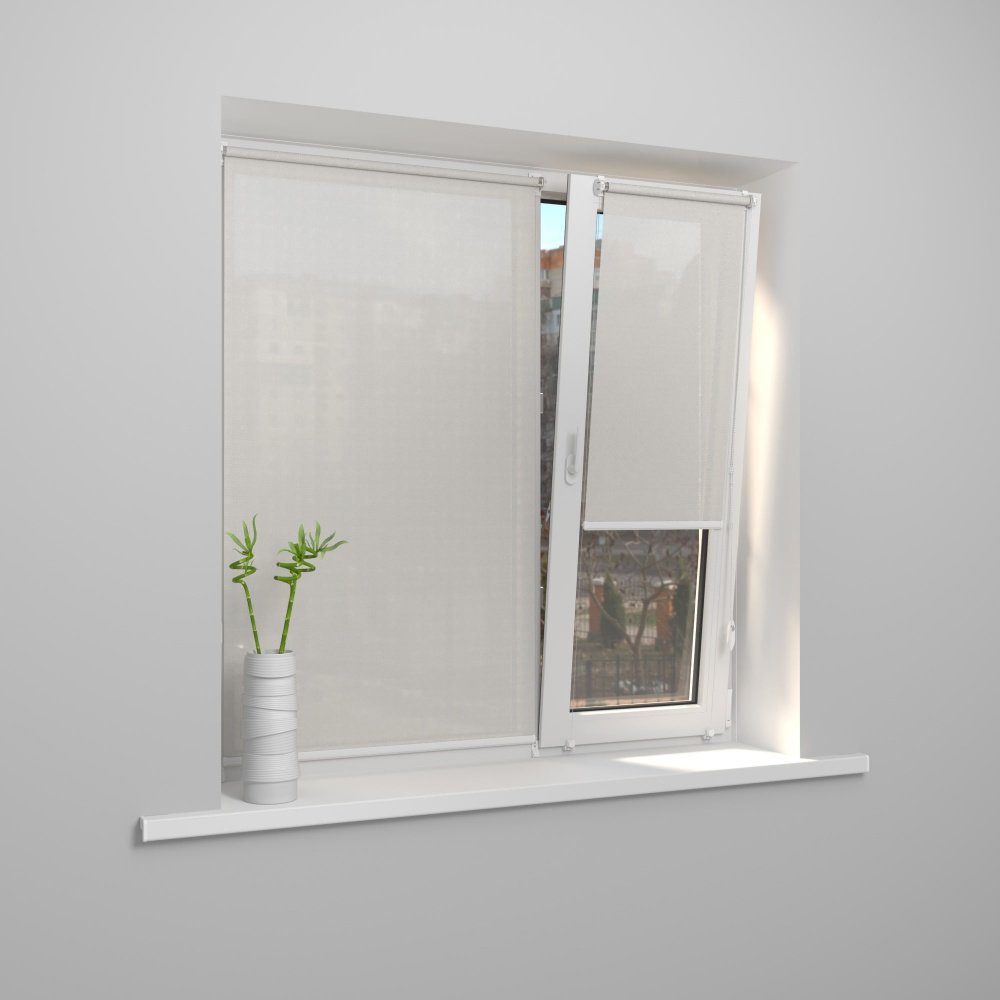 Ширина полотна — определяется замером ширины между штапиками окна. Габаритная ширина готового изделия с учетом кронштейнов равна ширине полотна + 3,7 см.