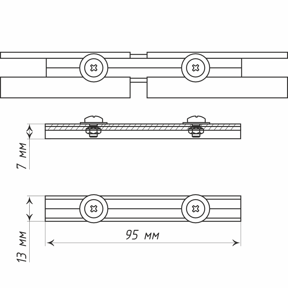 Надежное крепление двух отдельных частей профиля происходит благодаря паре стальных винтов с шайбами и гайками;