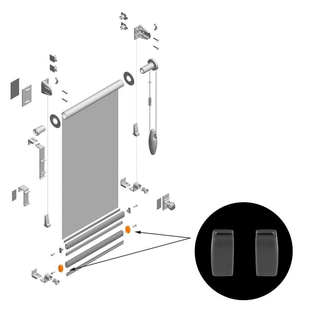 Заглушки для нижнего отвеса – детали, которые обеспечивают общий привлекательный вид рулонной шторы. Они крепятся на обе кромки отвеса и придают всей системе рулонной шторы готовый вид.
