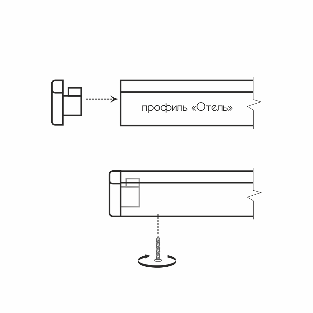 Стабильное крепление: заглушка фиксируется с помощью метиза, который «прижимает» ее к верхней плоскости профиля, гарантируя устойчивое положение даже при интенсивном использовании.