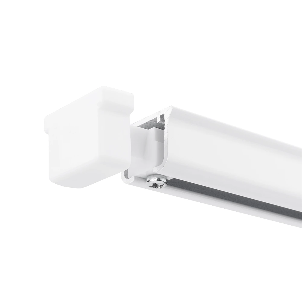 Надежная фиксация. Заглушка крепится с помощью металлического метиза, который плотно соединяет ее с верхней плоскостью профиля. При этом реализуется устойчивое положение заглушки даже при активной эксплуатации шторного полотна.