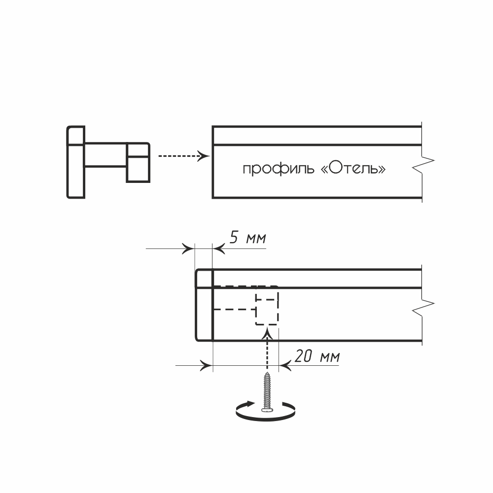 Стабильное крепление: заглушка фиксируется с помощью метиза, который «прижимает» ее к верхней плоскости профиля, гарантируя устойчивое положение даже при интенсивном использовании.