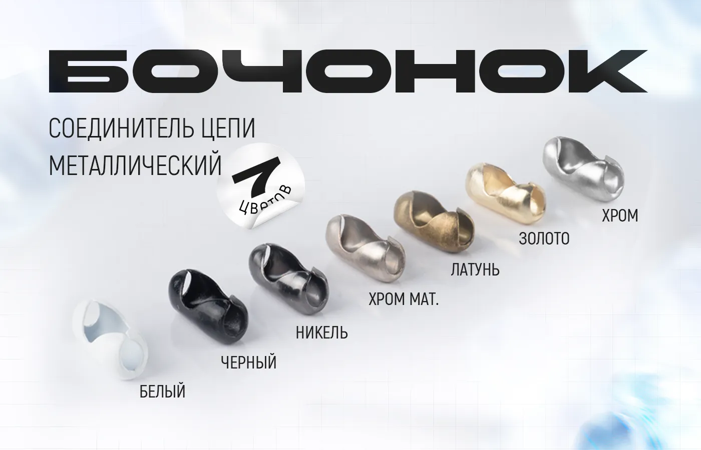 Соединитель цепи управления металлический «Бочонок» продается в упаковке 100 штук, 10 штук и по одной единице.